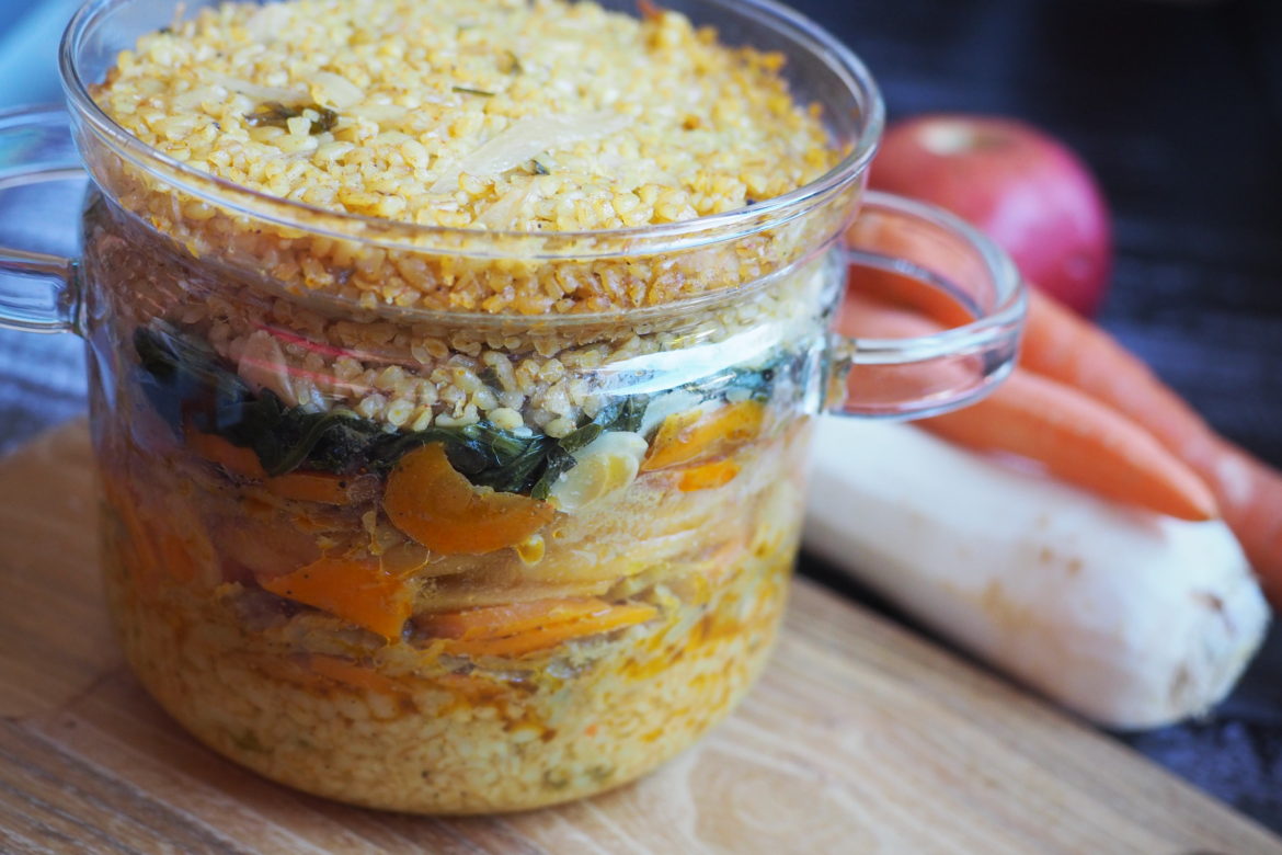 Dosyć jednak o mięsie, wszak przepis wegański. Najważniejsze to dobrze pilaf doprawić, bowiem czy z ryżem, czy bulgur – oba te składniki potrzebują charakteru.